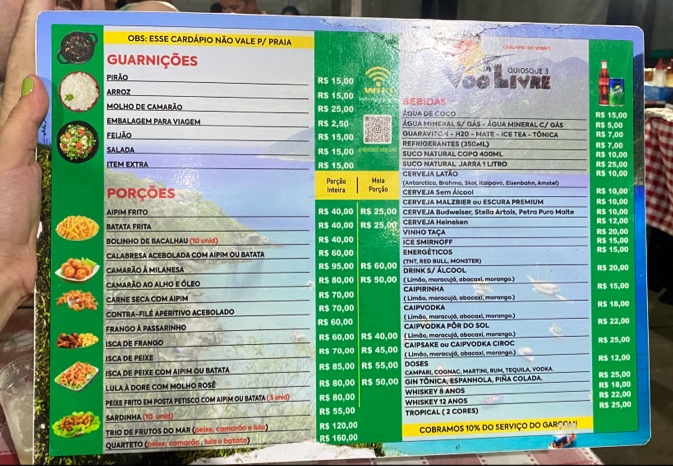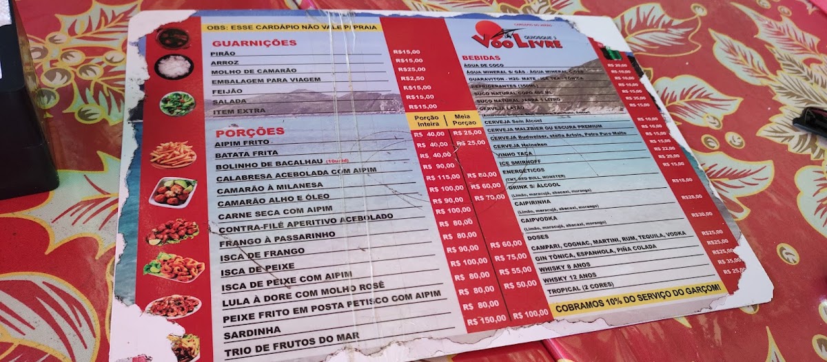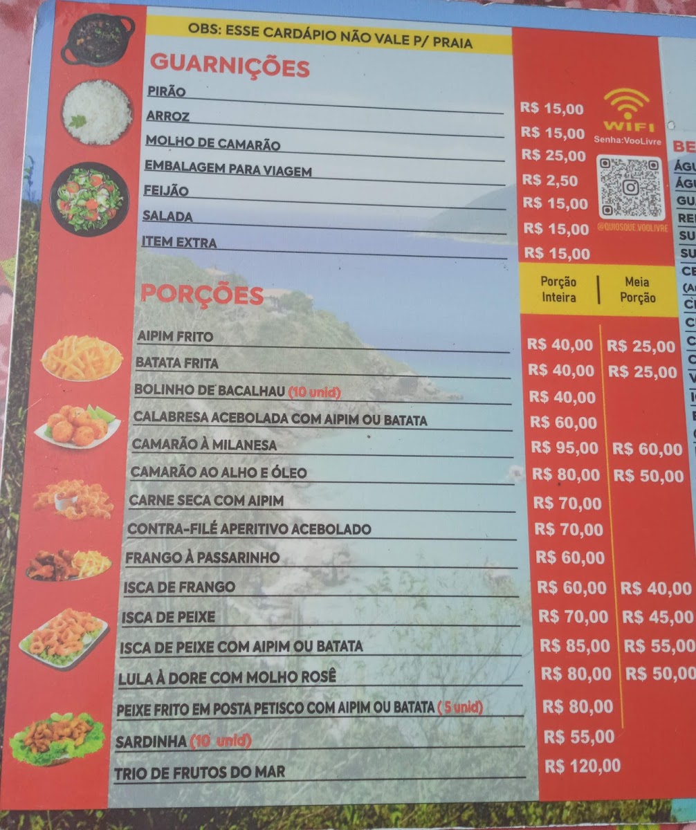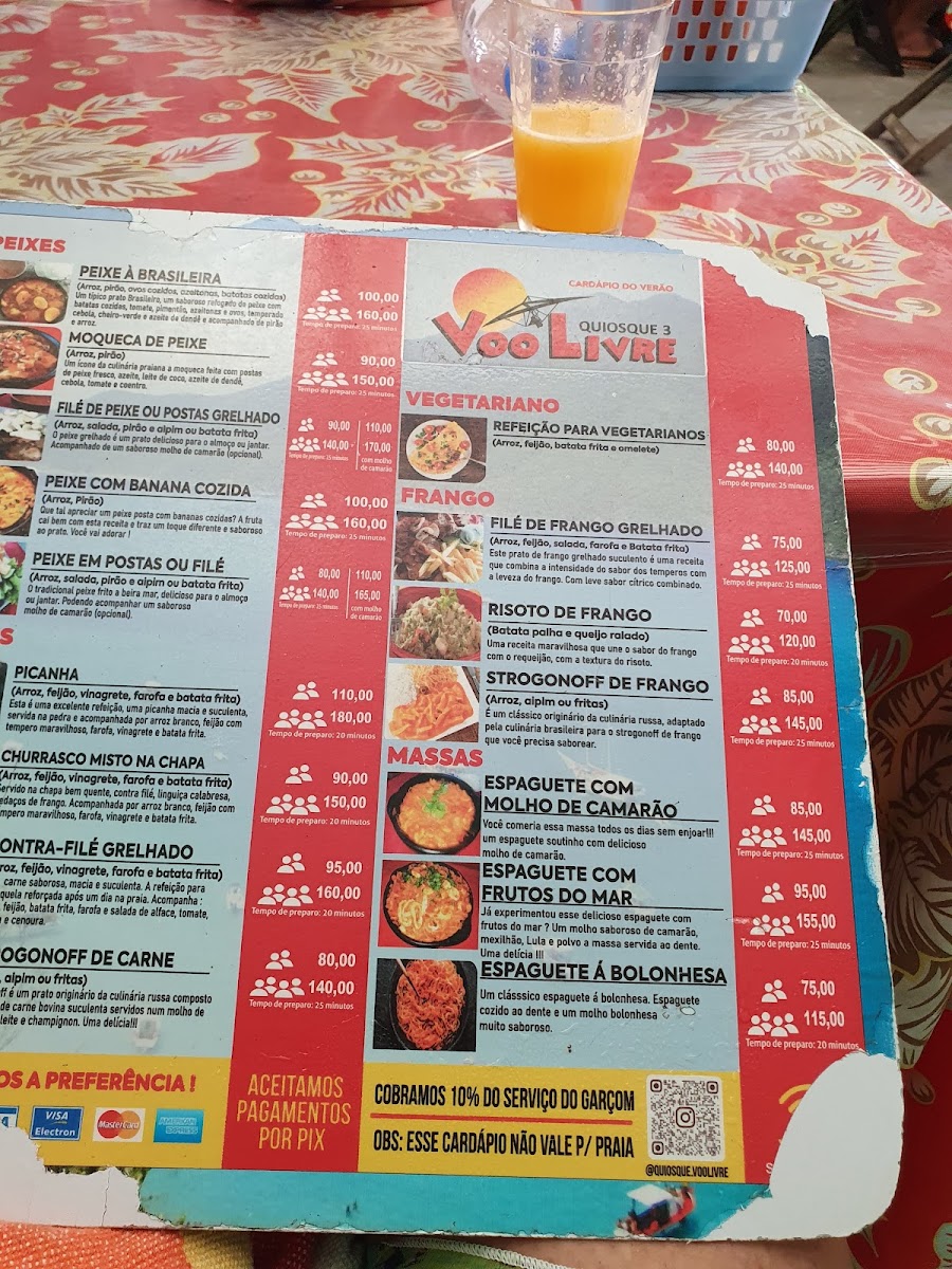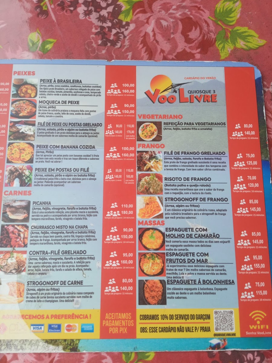 The menu at Quiosque Voo Livre offers a delightful selection of dishes that showcase the best of Brazilian coastal cuisine. Highlights include the Porção de Saladas Com Peixes, a fresh and vibrant dish that pairs perfectly with the sea breeze. For those who enjoy a refreshing drink, the Caipirinha de Limão is a must-try, offering a zesty, citrusy kick. The Moranga Com Camarão is a rich and flavorful choice, with tender shrimp served in a savory pumpkin bowl. Another standout is the Milanesa, a crispy, golden breaded dish that never fails to impress. The Chef Salad is an excellent option for those seeking a lighter yet satisfying meal. For seafood lovers, the Peixe Congro Rosa is a fantastic choice, cooked to perfection and complemented by an array of sides. The Frango Prato Maravilhoso E Acompanhamentos Que Comida Maravilhosa offers a mouthwatering chicken plate that comes with superb accompaniments, making it a fulfilling meal. Finally, the Batida Espanhola provides a sweet and smooth finish to any meal, perfect for sipping as you enjoy the view. Every dish on the menu reflects the restaurant's commitment to quality and flavor, making Quiosque Voo Livre a top destination for anyone visiting Arraial do Cabo.